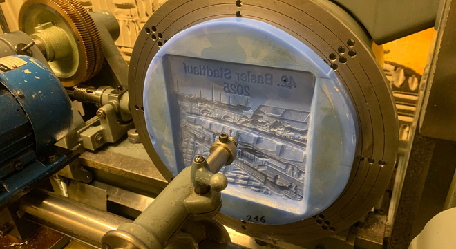 Die diesjährige Medaille zeigt die Mittlere Brücke um 1902/03 – mitten in ihrer Umbauphase mit der sogenannten Notbrücke im Hintergrund.